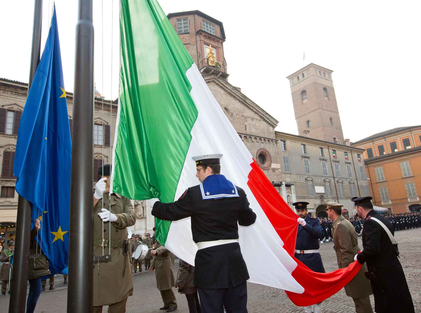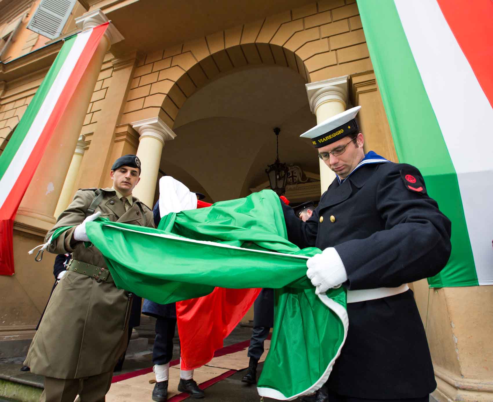 Giovedì 7 gennaio 2016, Giornata nazionale della Bandiera, si celebra a Reggio Emilia il 219° Anniversario della nascita del Primo Tricolore, che nacque nella città emiliana il 7 gennaio 1797, quale bandiera della Repubblica Cispadana. Ospite delle celebrazioni, in qualità di rappresentante delle istituzioni nazionali, sarà la presidente della Camera dei deputati Laura Boldrini. E quest’anno vengono introdotte alcune novità rispetto alle precedenti edizioni: l’atterraggio di un paracadutista con bandiera tricolore in piazza Prampolini, posti disponibili per i cittadini al teatro Municipale Romolo Valli e un centinaio di bandiere sventolate dagli studenti. I ponti di Calatrava e la fontana del teatro Valli saranno illuminati con i colori della bandiera italiana le sere del 6 e del 7 gennaio. Con l’onorevole Boldrini, ai tre principali momenti delle celebrazioni della mattina – l’Alzabandiera e gli onori militari in piazza Prampolini, l’incontro con gli studenti in Sala del Tricolore (a invito) e gli interventi istituzionali al teatro Municipale ‘Romolo Valli’ – partecipano il sindaco di Reggio Emilia Luca Vecchi; il presidente della Regione Emilia-Romagna Stefano Bonaccini; il presidente della Provincia Giammaria Manghi. Ad anticipare il programma della giornata, dalle 11 alle 11.15, sarà il suono della Campana civica, grazie all’Unione Campanari reggiani. Le celebrazioni istituzionali inizieranno alle ore 11.30 in piazza Prampolini, con la cerimonia alla presenza della presidente Boldrini e delle autorità civili e militari: Onori militari, Alzabandiera ed esecuzione dell’Inno nazionale. Eseguito l’Inno, è previsto, con condizioni meteo favorevoli, l’atterraggio sulla piazza di un militare paracadutista, con una bandiera del Tricolore al vento. Il Tricolore sarà sventolato anche da un centinaio di studenti delle scuole reggiane, tra quelli presenti in piazza, grazie al contributo dell’Associazione nazionale Comitato Primo Tricolore. La manifestazione proseguirà, alle ore 12, nella storica Sala del Tricolore, con la consegna della Costituzione italiana a delegazioni di studenti. Alle 12.30, nel teatro Municipale Romolo Valli in piazza Martiri del 7 luglio, si svolgerà l’incontro della presidente Laura Boldrini con studenti, associazioni, cittadini e gli altri rappresentanti istituzionali. Qui interverranno il sindaco di Reggio Emilia Luca Vecchi, il presidente della Provincia Gianmaria Manghi, il presidente della Regione Emilia-Romagna Stefano Bonaccini. A chiudere, l’intervento della presidente della Camera dei deputati, Boldrini.