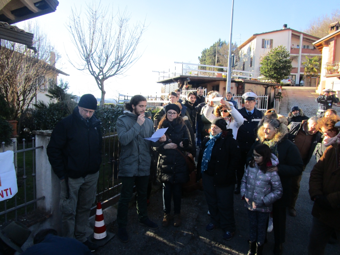 Al pomeriggio, la conclusione a Castelnovo Monti, per ricordare quattro uomini catturati l’8 ottobre 1944, durante il grande rastrellamento nazista in Appennino, e finiti a lavorare nei campi in Germania. Tre di loro, Inello Bezzi, Ermete Zuccolini e Francesco Toschi, sono morti nel campo di Kahla in Turingia fra il marzo e l’aprile 1945. Il quarto, Ugolino Simonazzi, militante comunista da sempre perseguitato dal nazismo, è morto invece nel campo di Brandeburg Havel, vicino a Berlino. Il ritrovo qui alle 14.30 davanti alla casa di Inello Bezzi in via U. Monti 9, lungo la strada che dalle scuole medie porta al lago di Virola. Da lì si è continuato in via Roma 80 per Ugolino Simonazzi, in vicolo Costole 2 (nella “Castelnovo vecchia”) per Ermete Zuccolini e in via I Maggio 2, vicino al mulino, per Francesco Toschi. Anche qui, oltre al vicesindaco Emanuele Ferrari e al gonfalone comunale, si è raccolta una piccola folla di giovani, parenti e abitanti. In giorni in cui la memoria viene strattonata da ogni lato, e usata come strumento di polemica, Istoreco si impegna a realizzare opere concrete di cultura delle memoria. Le pietre d’inciampo sono queste, un lavoro storico e culturale che coinvolge i giovani per ricordare momenti e persone e per permettere ad altri, anche in futuro, di poterlo fare.