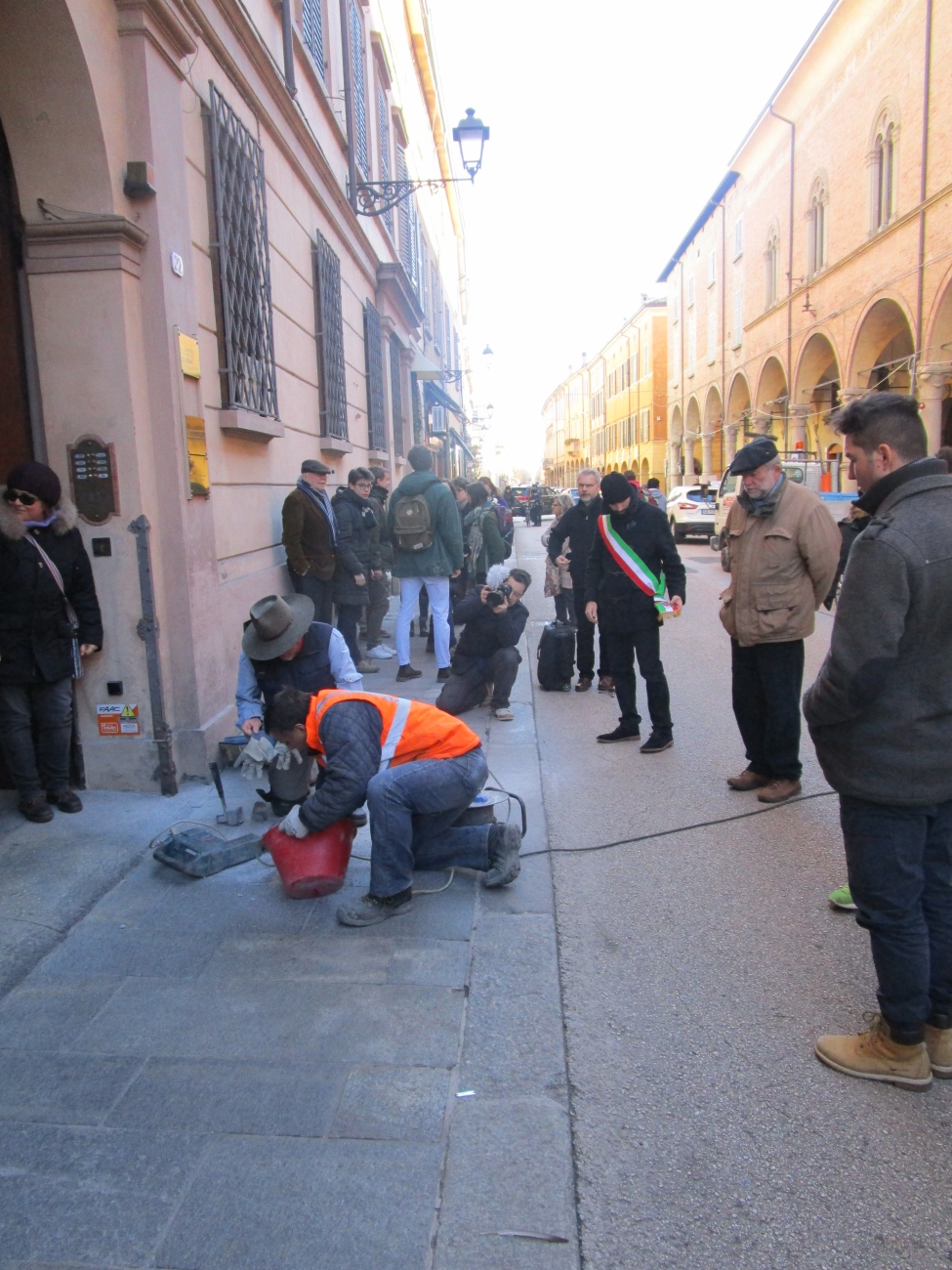 Il viaggio è iniziato a Correggio, in via Mandrio all’incrocio con via San Martino per la posa delle due pietre per i fratelli Gilda e Claudio Sinigaglia, ebrei correggesi morti a Sassuolo mentre vivevano in clandestinità dopo l’applicazione concreta delle leggi razziali. Claudio era diabetico, l’ha condannato l’assenza di insulina, impossibile da reperire in clandestinità. La sorella Gilda ha preso la polmonite viaggiando per aiutarlo, e pure lei è morta di malattia. Alla cerimonia ha partecipato anche il sindaco correggese Ilenia Malavasi.